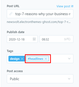 Ghost has awesome featured posts option to show some of your chosen posts as featured for the visitors. To add a post as featured, go to Post > Settings and scroll down. Select the checkbox Feature this post