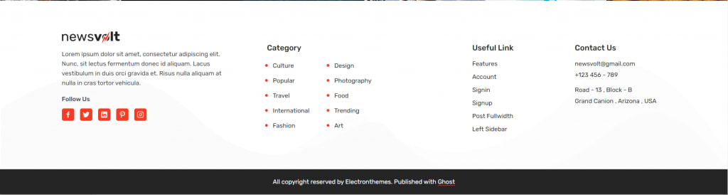 - Unzip the newsvolt.zip file and copy newsvolt folder to your /ghost_installation/content/themes