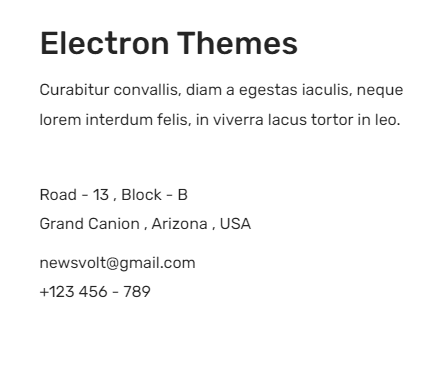 If you have any questions that are beyond the scope of this help file, please feel free to send your questions to our support email: support@electronthemes.com . Our support team will reply to you as soon as possible.