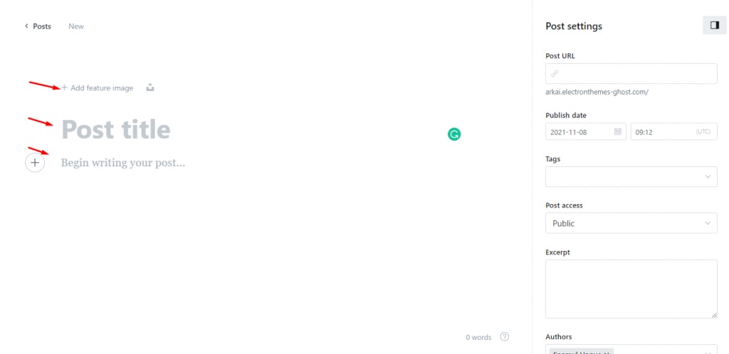 Ghost has a beautiful dashboard design. You can easily create a post. Go to Dashboard > Posts > New Post