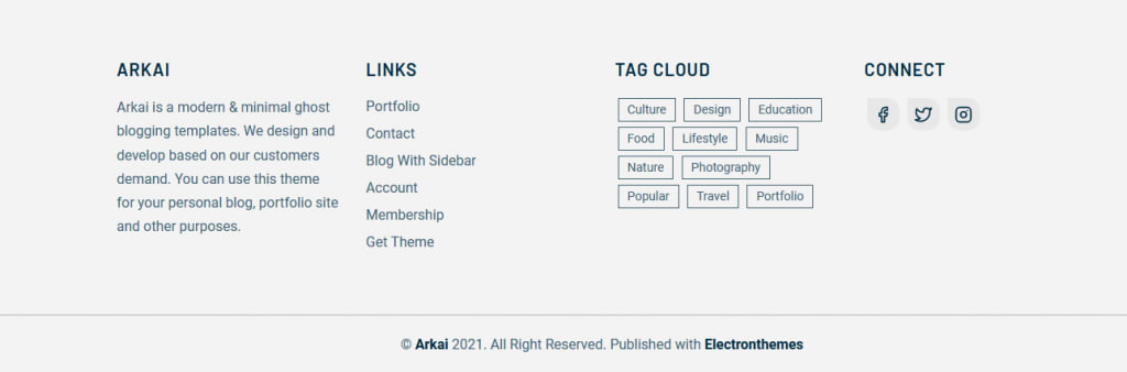 - Unzip the arkai.zip file and copy arkai folder to your /ghost_installation/content/themes