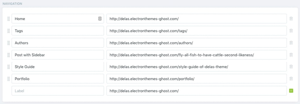 Ghost only support two types of Navigation. Primary and Secondary Navigation Menu. On header, primary navigation is showing and On Footer secondary navigation is showing. Go to Dashboard > Settings > Navigation