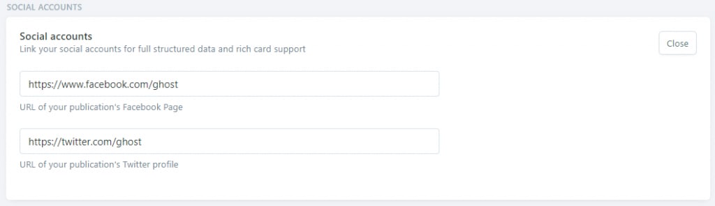 Social account section is for showing Facebook, Twitter links of your site. Go to Dashboard > Settings > Social Accounts