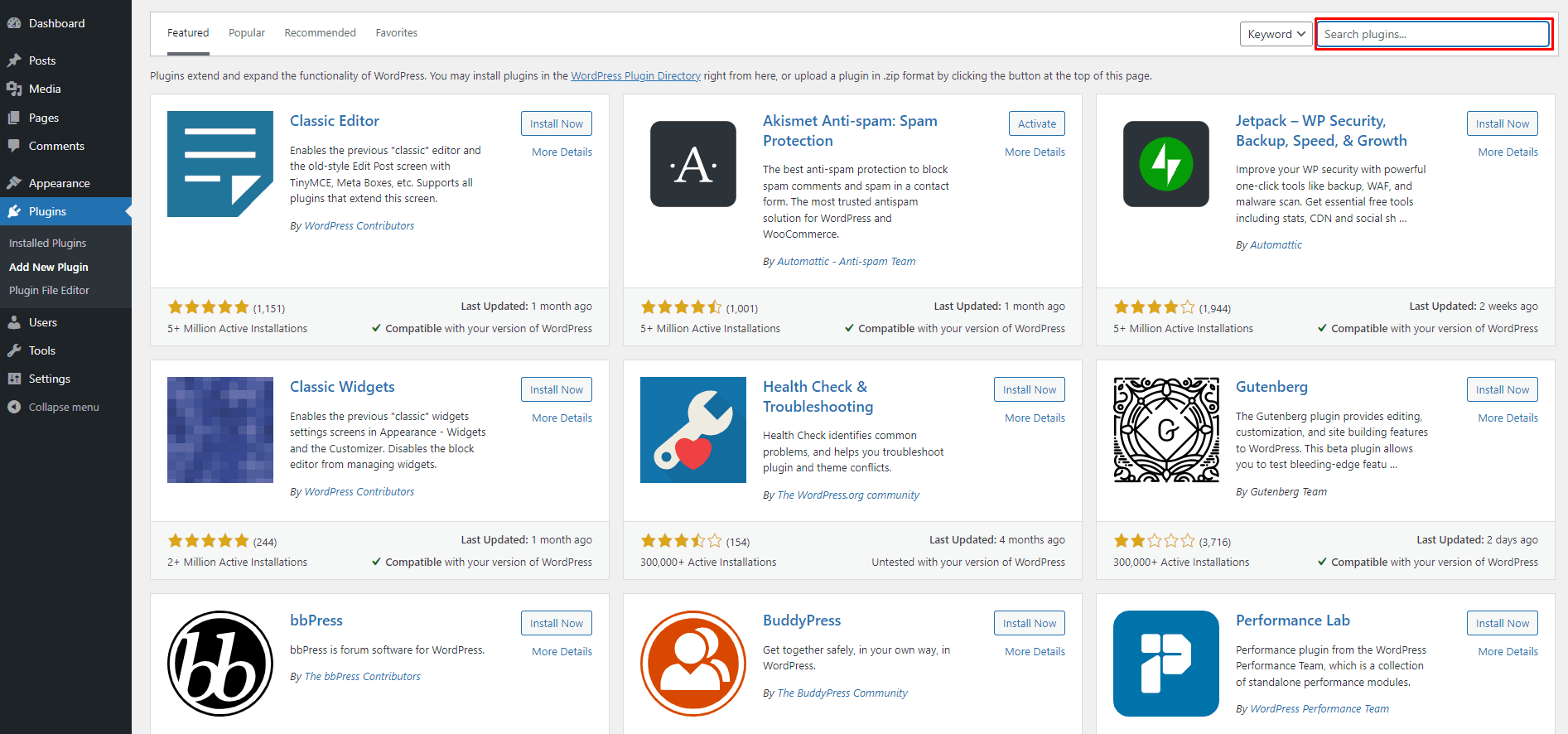 Installing new plugins from WP plugin Repository
