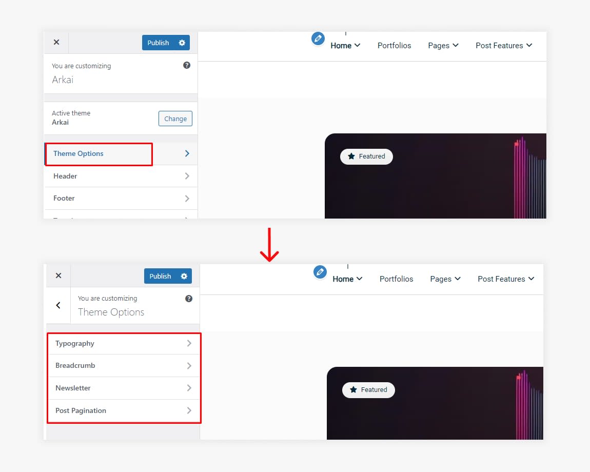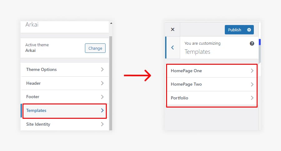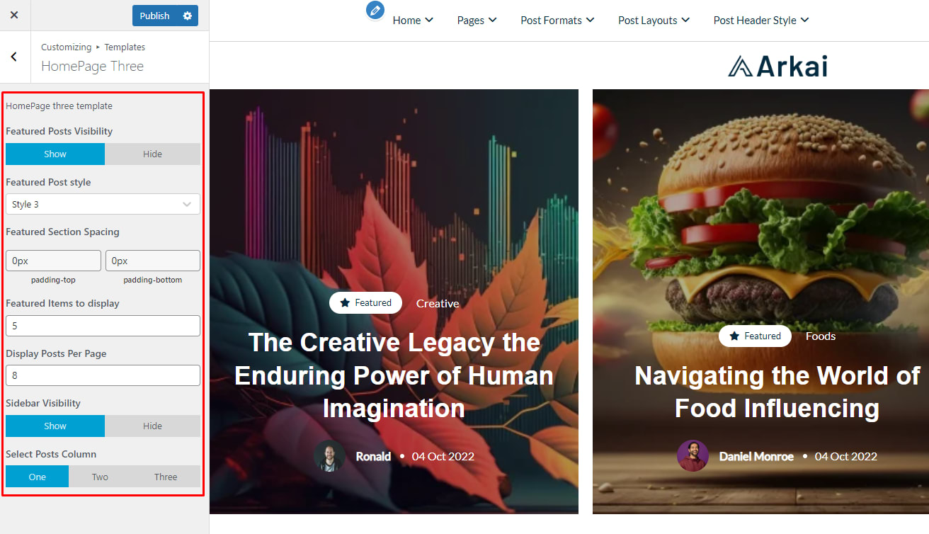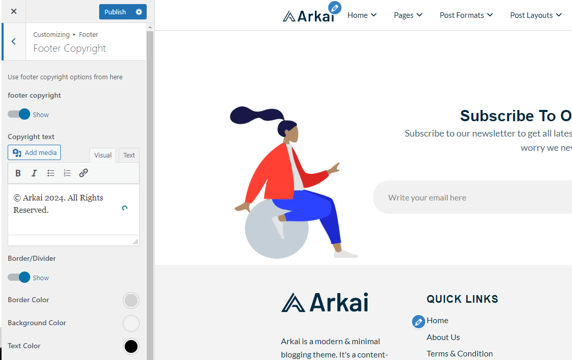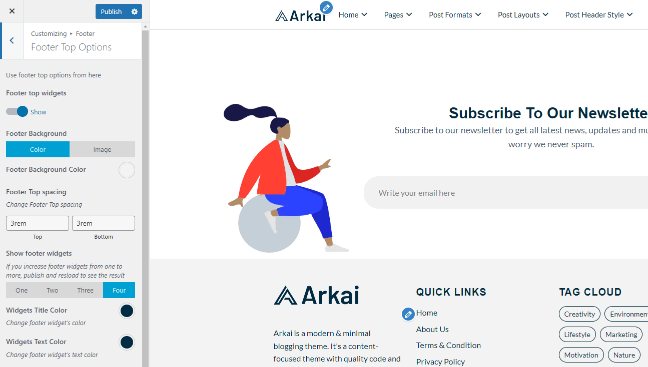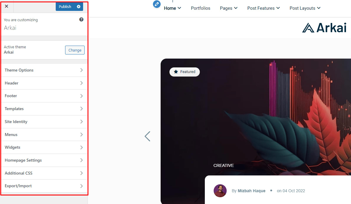 Note: If you customize any Option in the Arkai Theme Customizer option After customizing Click on Publish button to make your changes.