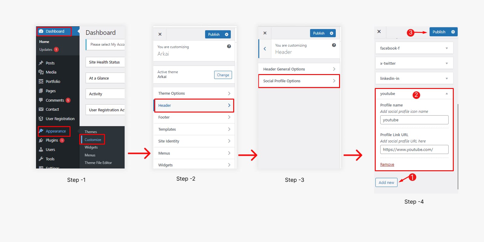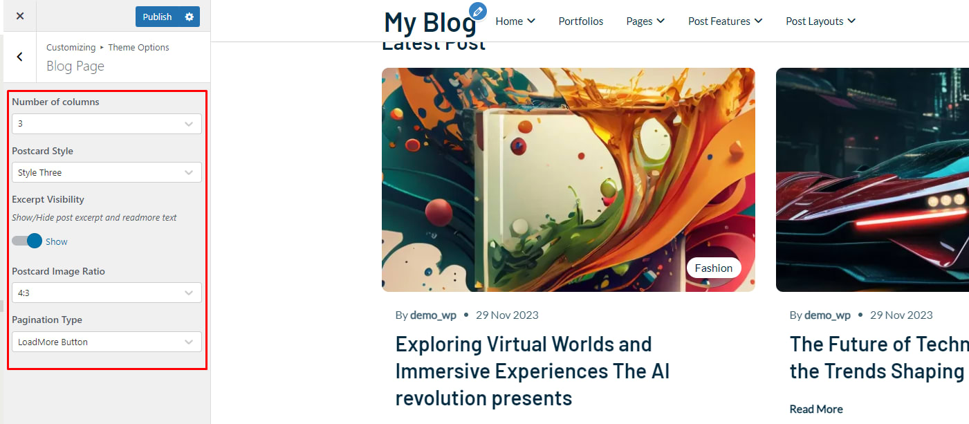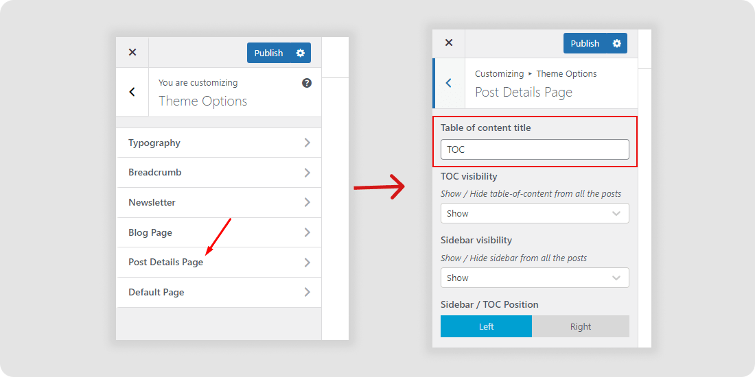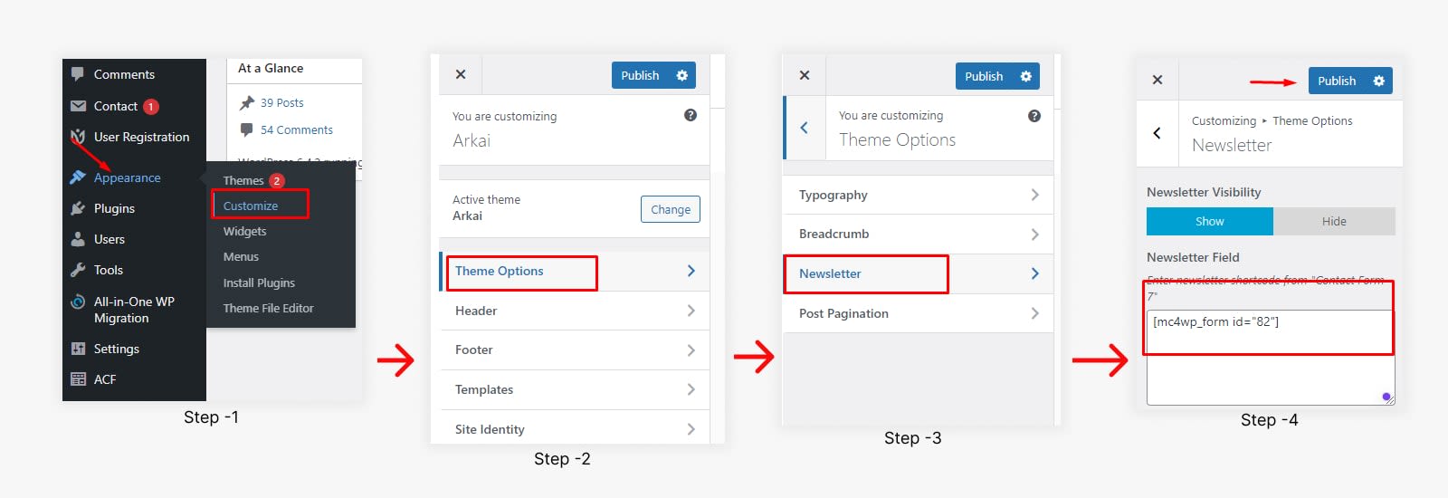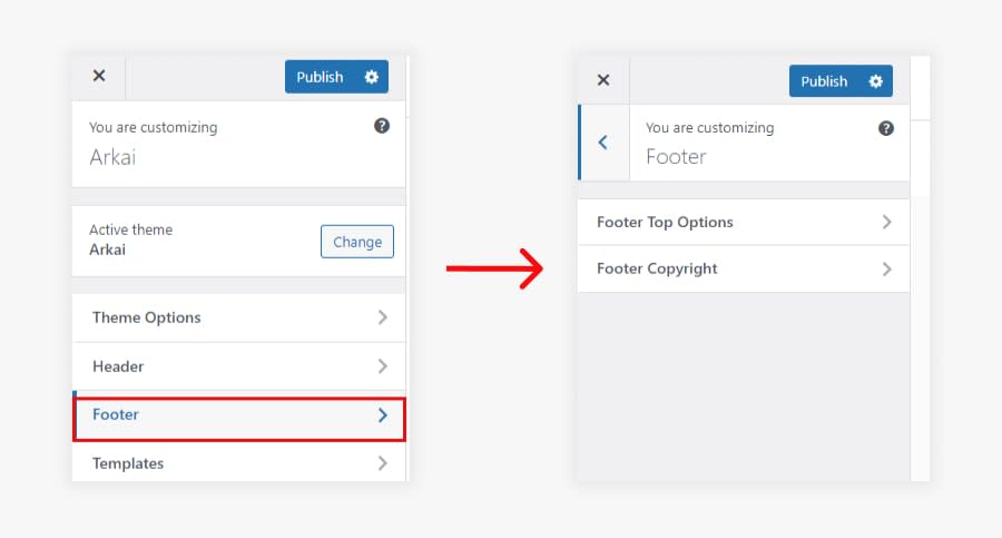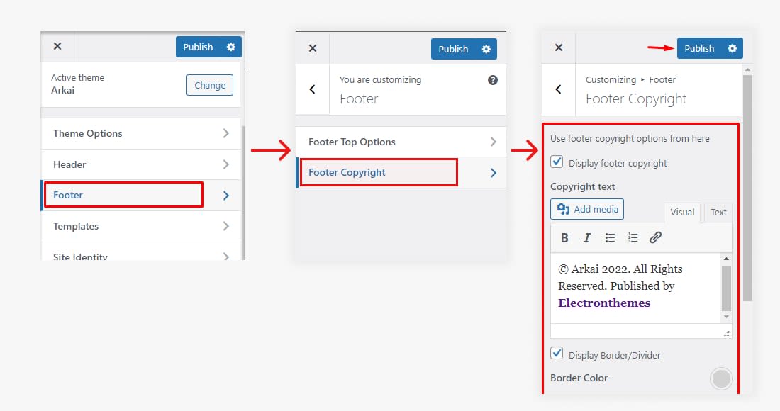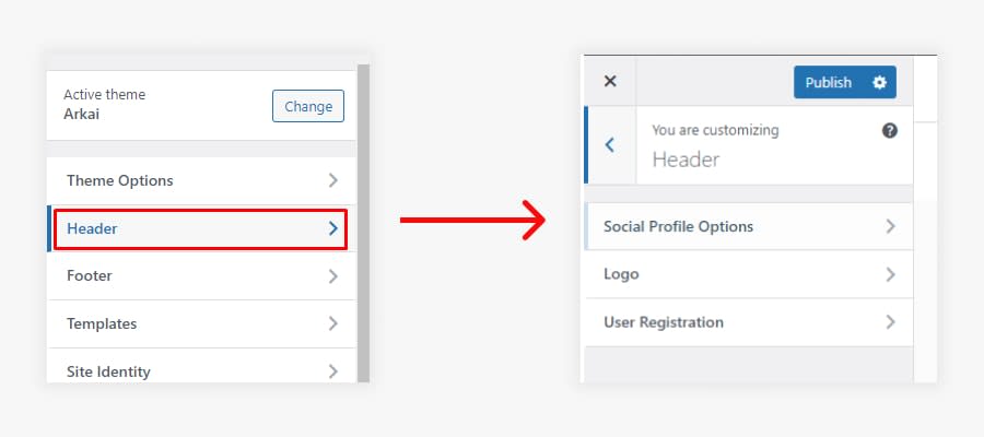 Note: If you customize any Option in the Arkai Theme Customizer option After customizing Click on Publish button to make your changes.
