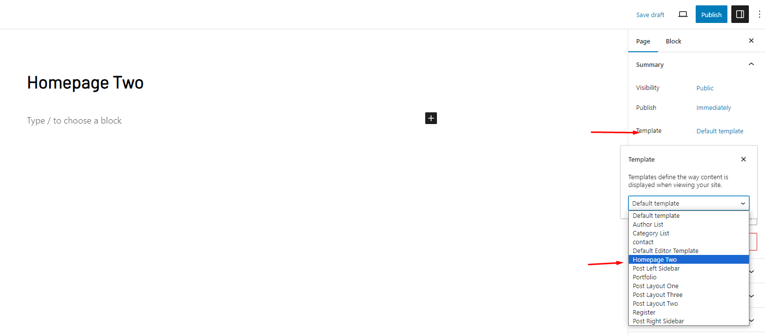 To Change Homepage and portfolio page template follow the instruction: