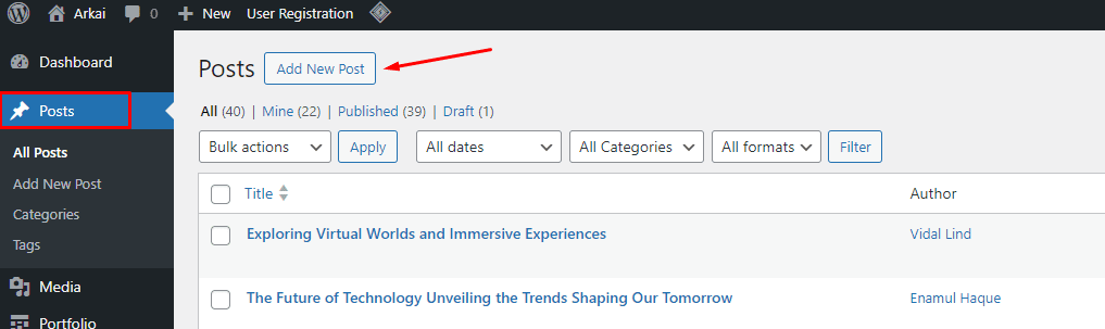 - Go to your WordPress dashboard and click on