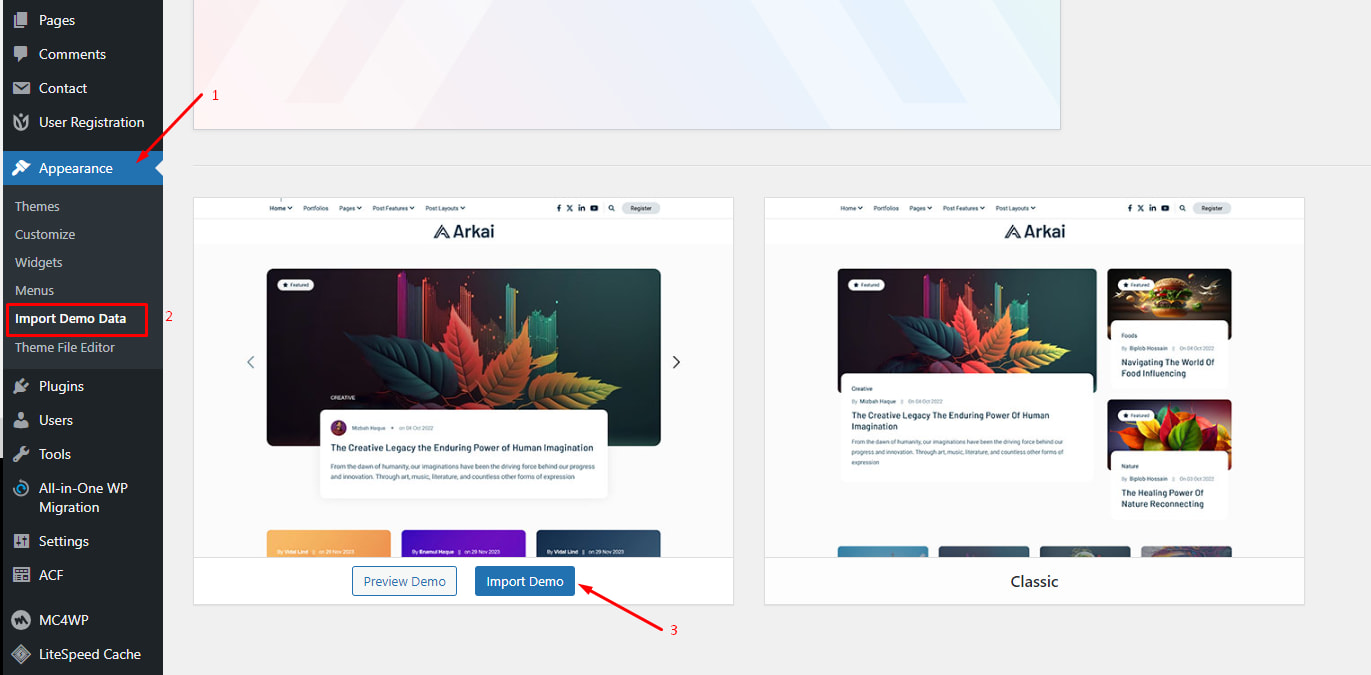Arkai theme has 2 demo content. You can import our demo content just one click.