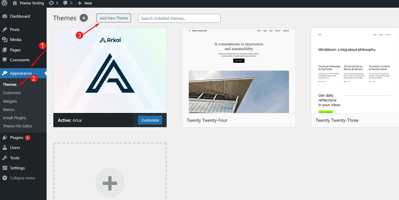 Appearance > Themes