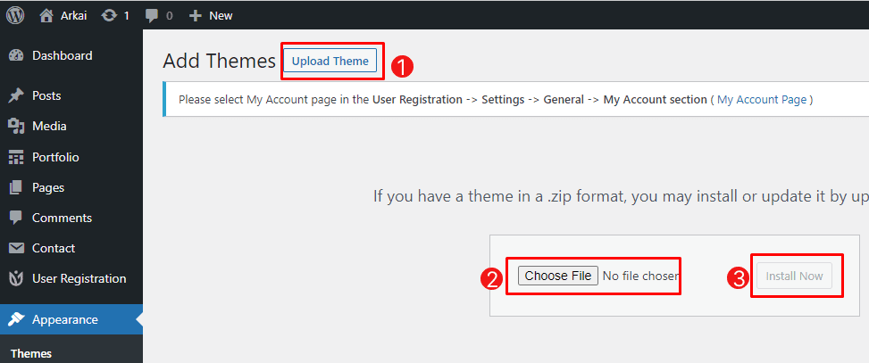 Themes then click onUpload Theme