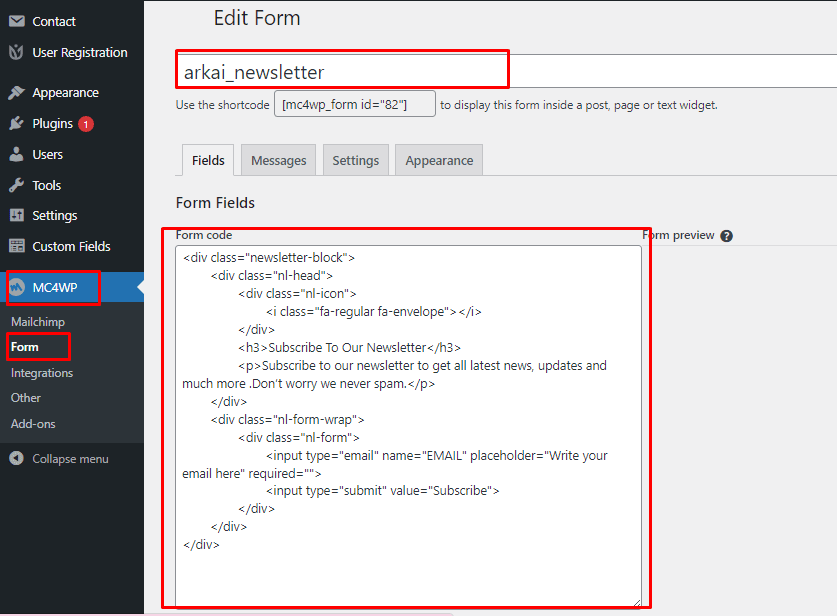 - Mail Chimp Sign From. Display Newsletter Sign-up form.