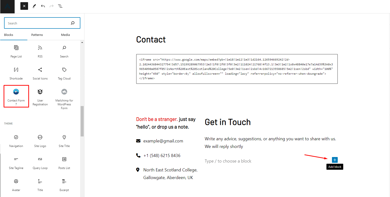 click on the widget area where you want to add then click on the plus(+) icon and find a widget which your need then click on widget