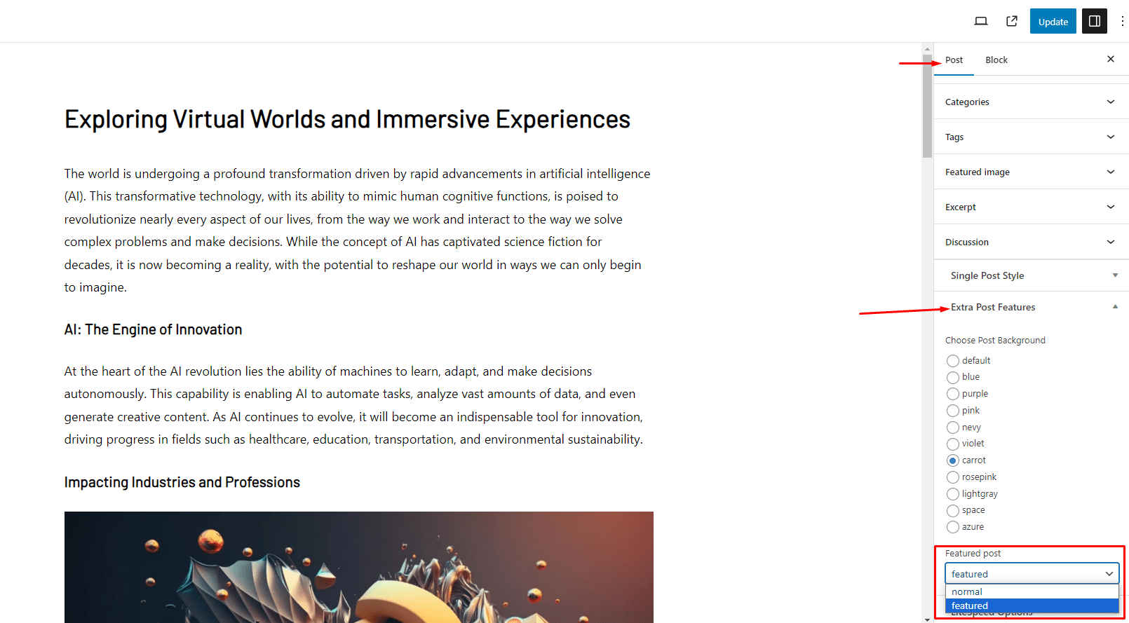 - Categories - Display the category's latest posts.