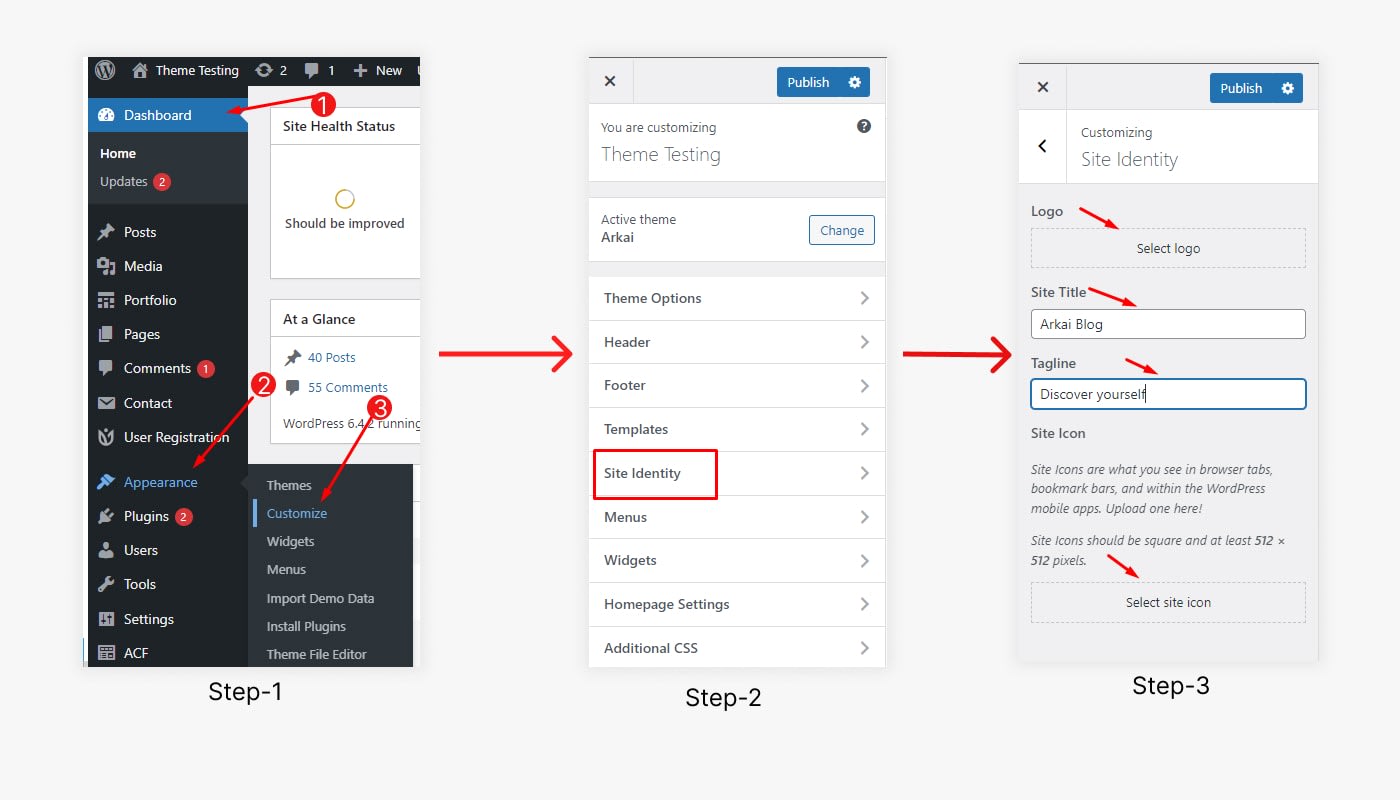 To change your Site Logo, Site Title, and Favicon. Follow the following steps