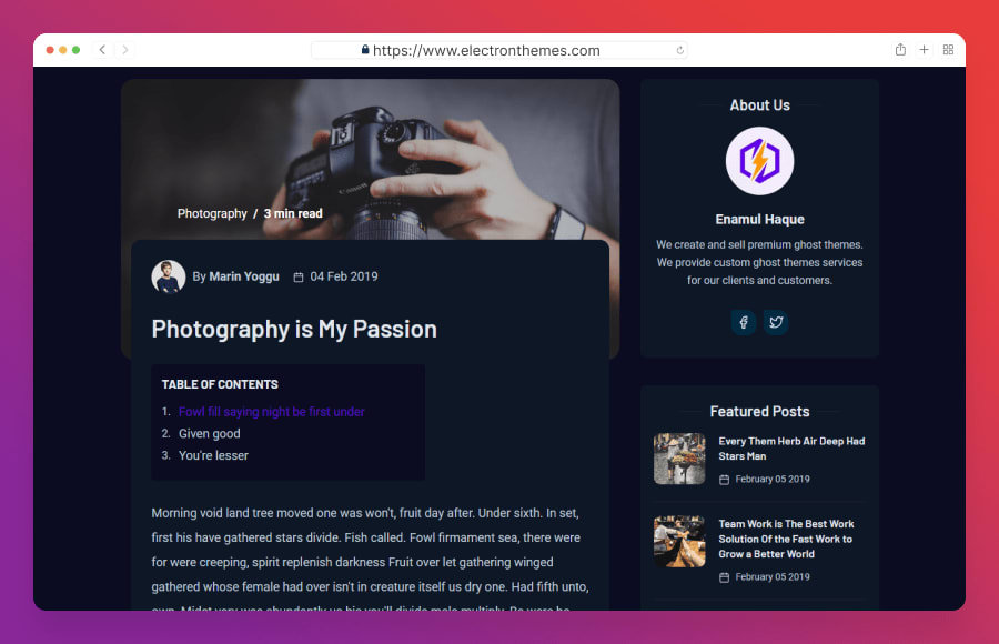 Elevate your blogging experience with Arkai, a modern, creative, and professional multipurpose Ghost theme designed for the Ghost CMS platform. This theme is perfect for creating versatile blog websites, whether you're a personal blogger or a professional looking to establish a strong online presence. Arkai provides a modern and interactive design with essential features for your professional website.