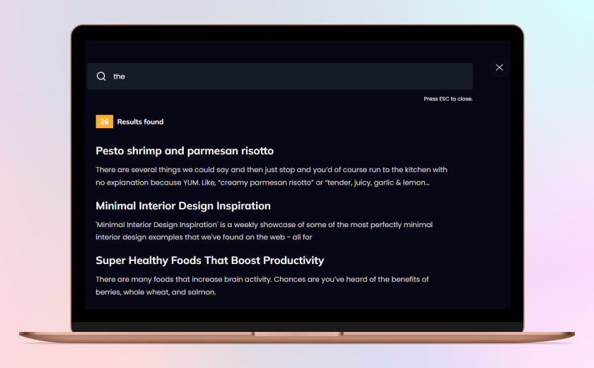Blooria has a Real-time search bar. Your users can find your article faster on the site.