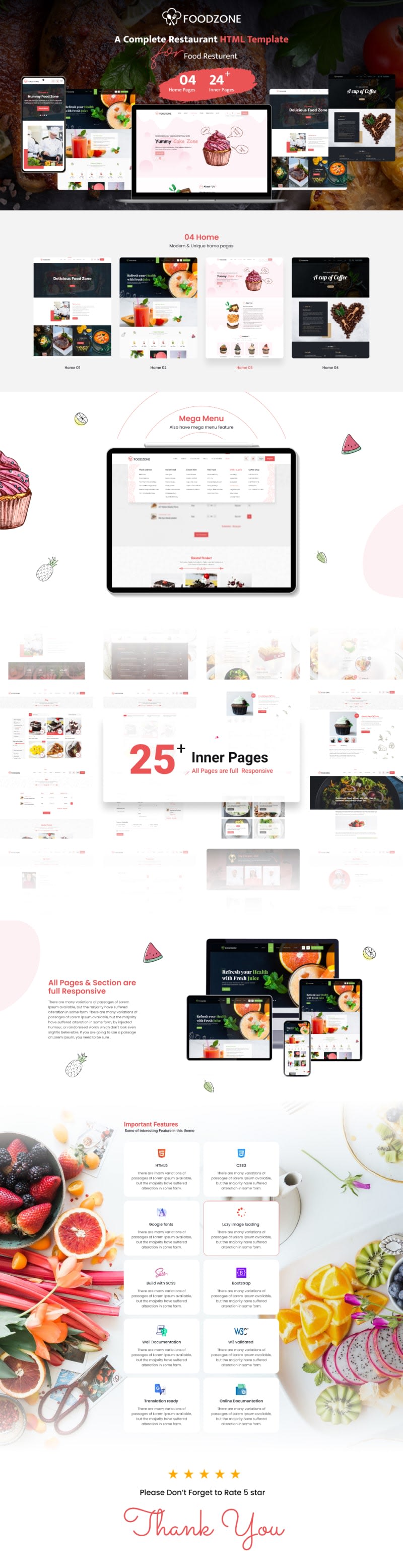 Foodzone Restaurant HTML Template Shortcut Overview: